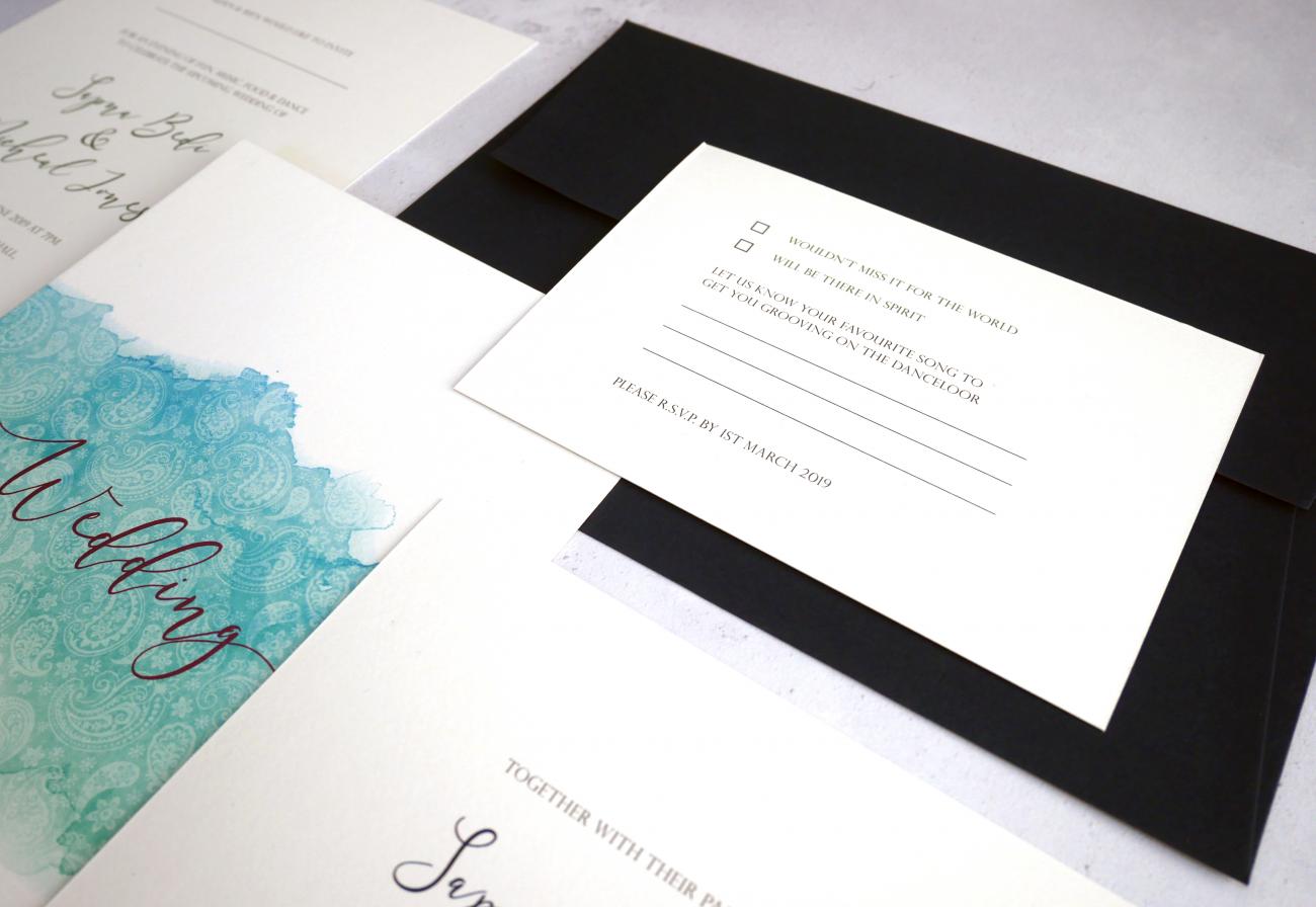 RSVP cards are provided with C6 envelopes to match the main envelope.