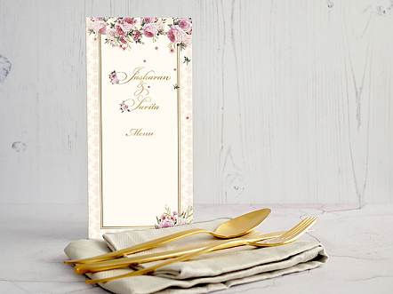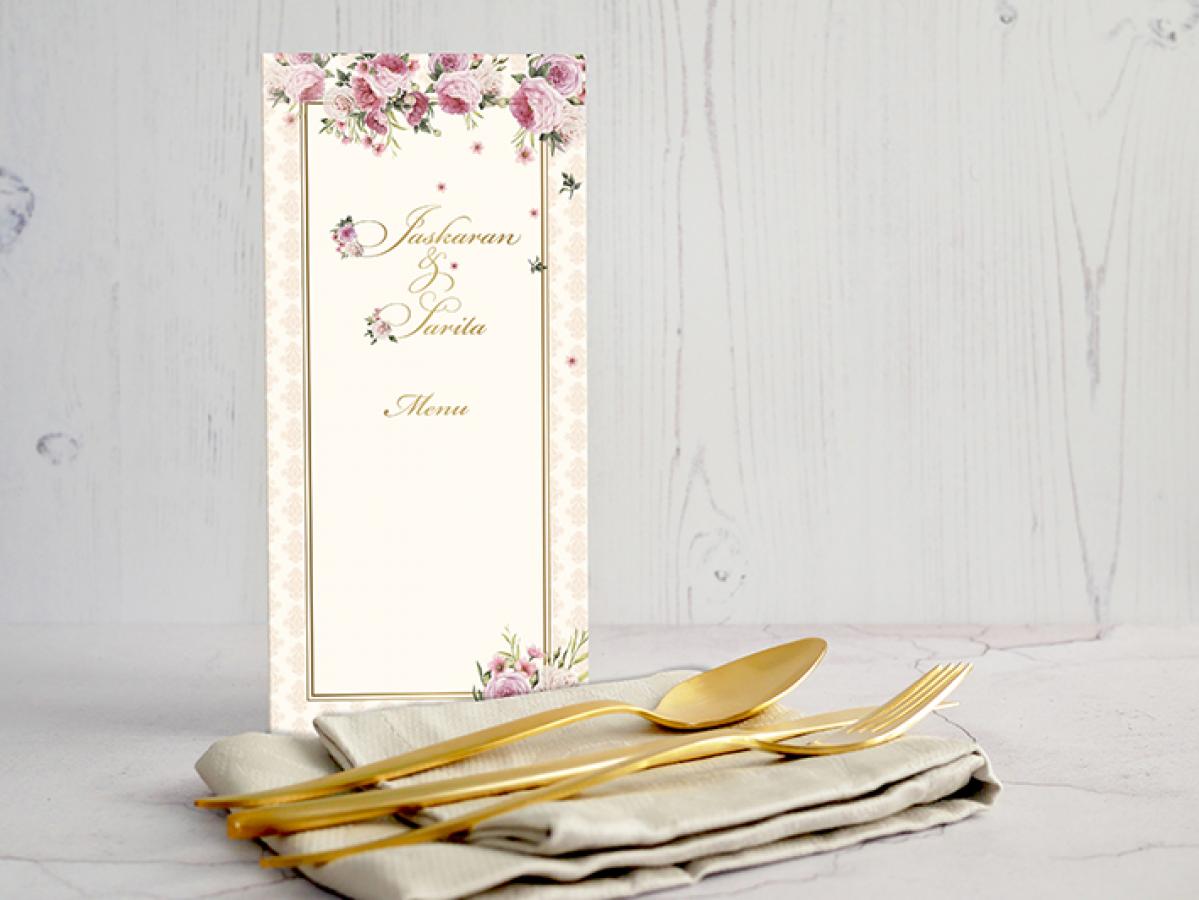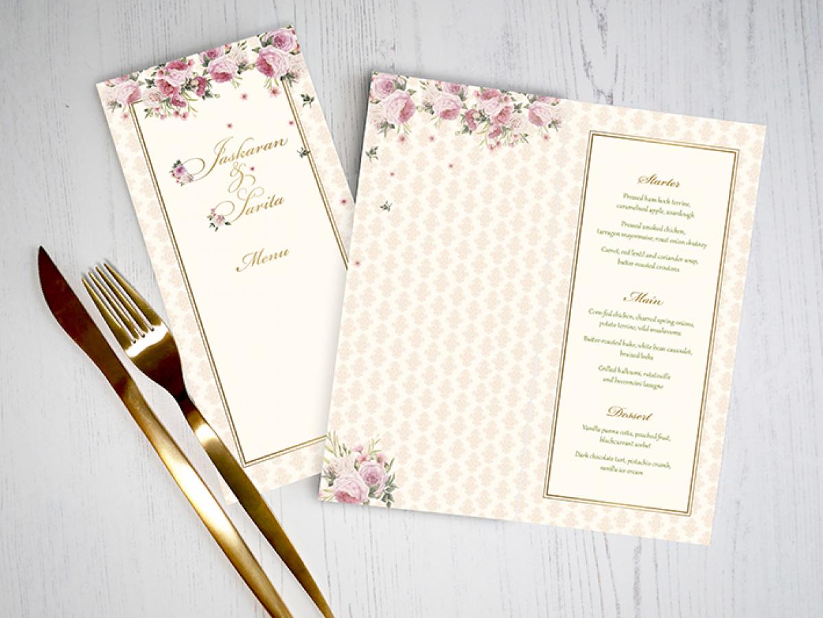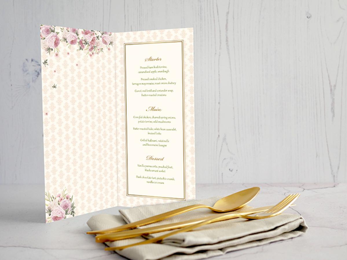 Menu cards have been designed to be table menus. We advise ordering 2 per table so you can place one on either side of the centrepiece ensuring your guests don't have to stretch to far.
